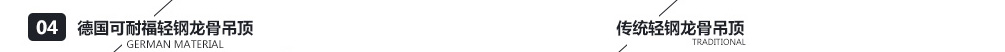 专用轻钢龙骨,采用专用连接件,杜绝吊顶变形、开裂、虫蛀等现象。