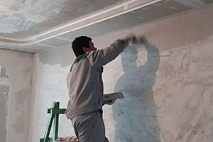 专用环保改性腻子进行披刮,调整墙体的平整度、清洁度和湿润度,通过厚度和平整度的检验控制,确保墙面品质。